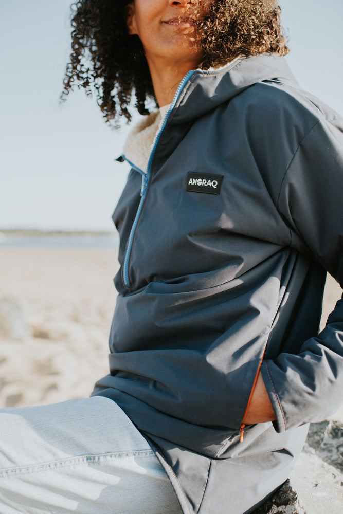 “I LOVE my ANORAQ! It’s perfect for those all weather beach days and walks with the family. The dropped seat is so helpful when you need to (and can) sit anywhere and the fact that it’s reversible with pockets, is the icing on the cake!